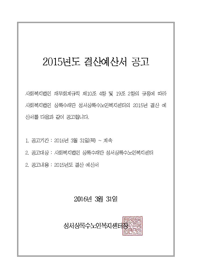 ¼º¼»ó·Ï¼ö³ëÀκ¹Áö¼¾ÅÍ 2016³â 1Â÷Ãß°¡°æÁ¤¿¹»ê °ø°í